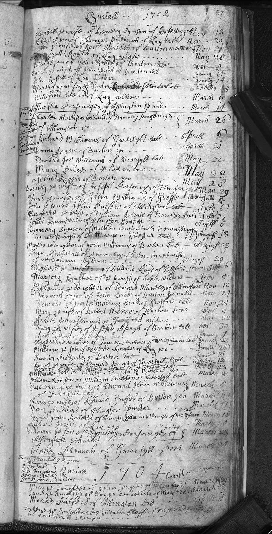 Gresford Burial 5 March 1703 Thomas son of William Snellson of Gwersyllt labourer