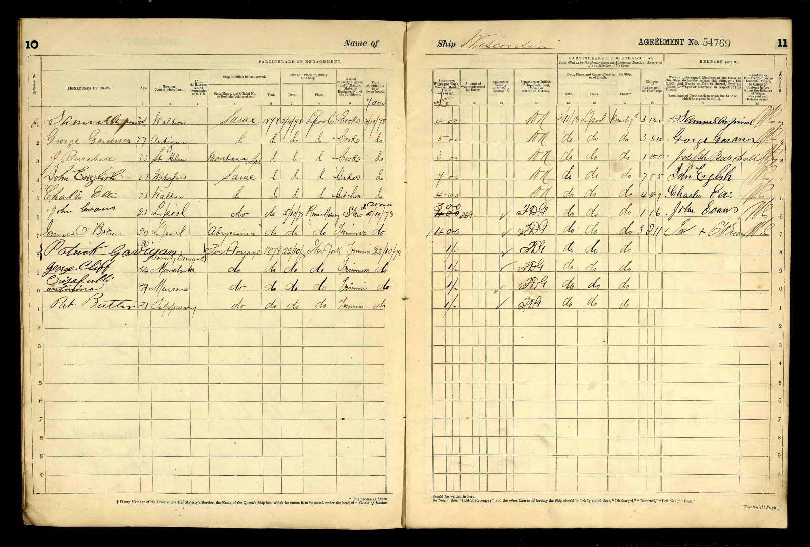 John English ship's baker 1878 SS 'Wisconsin'
