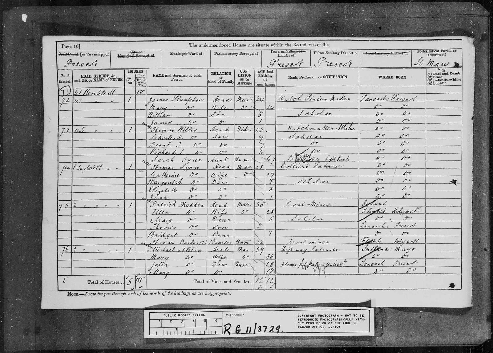 Census 1881 Lancashire Frank Tyrer Willis a. 7