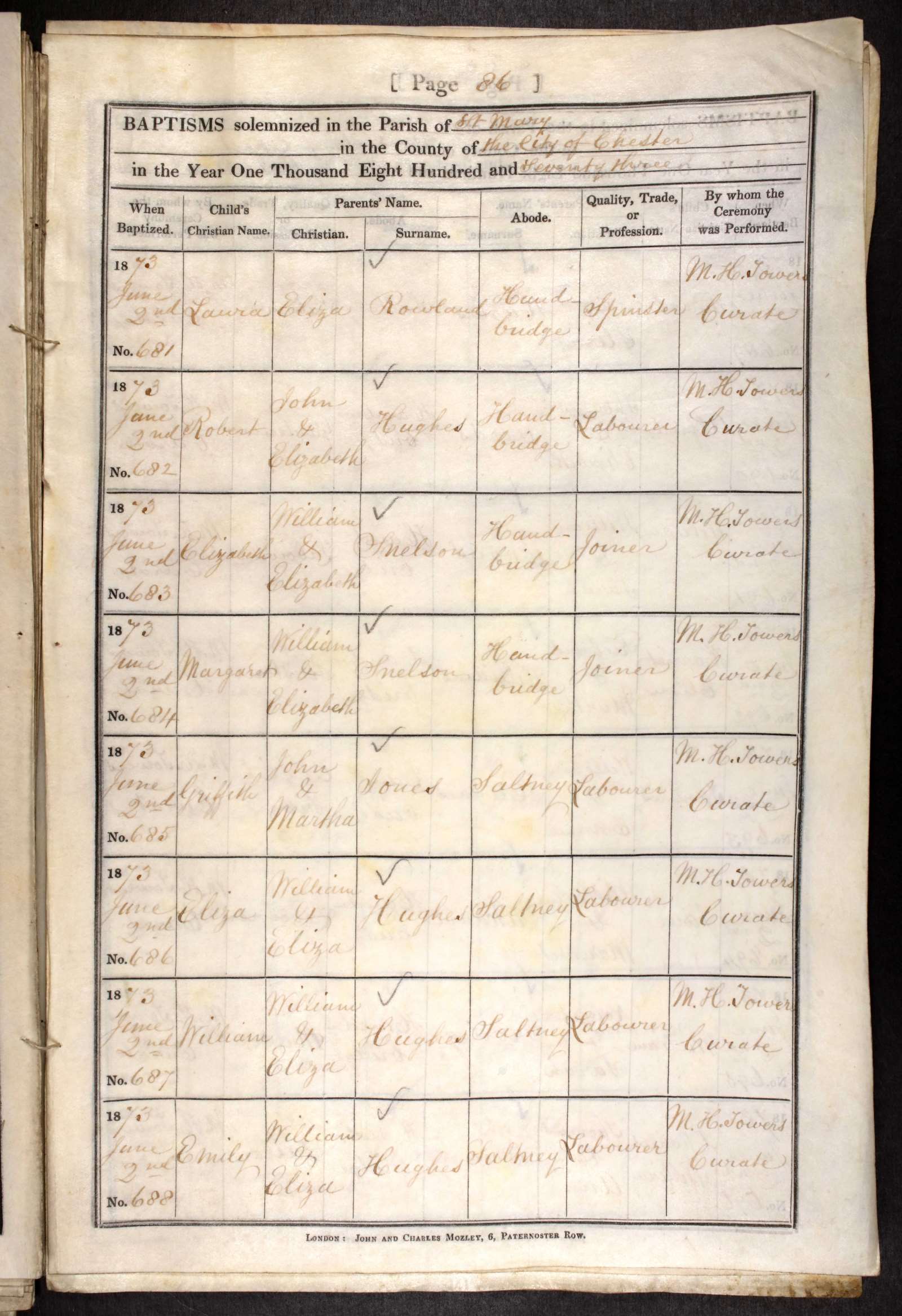 Baptism 1873 Cheshire Chester Elizabeth & Margaret Snelson