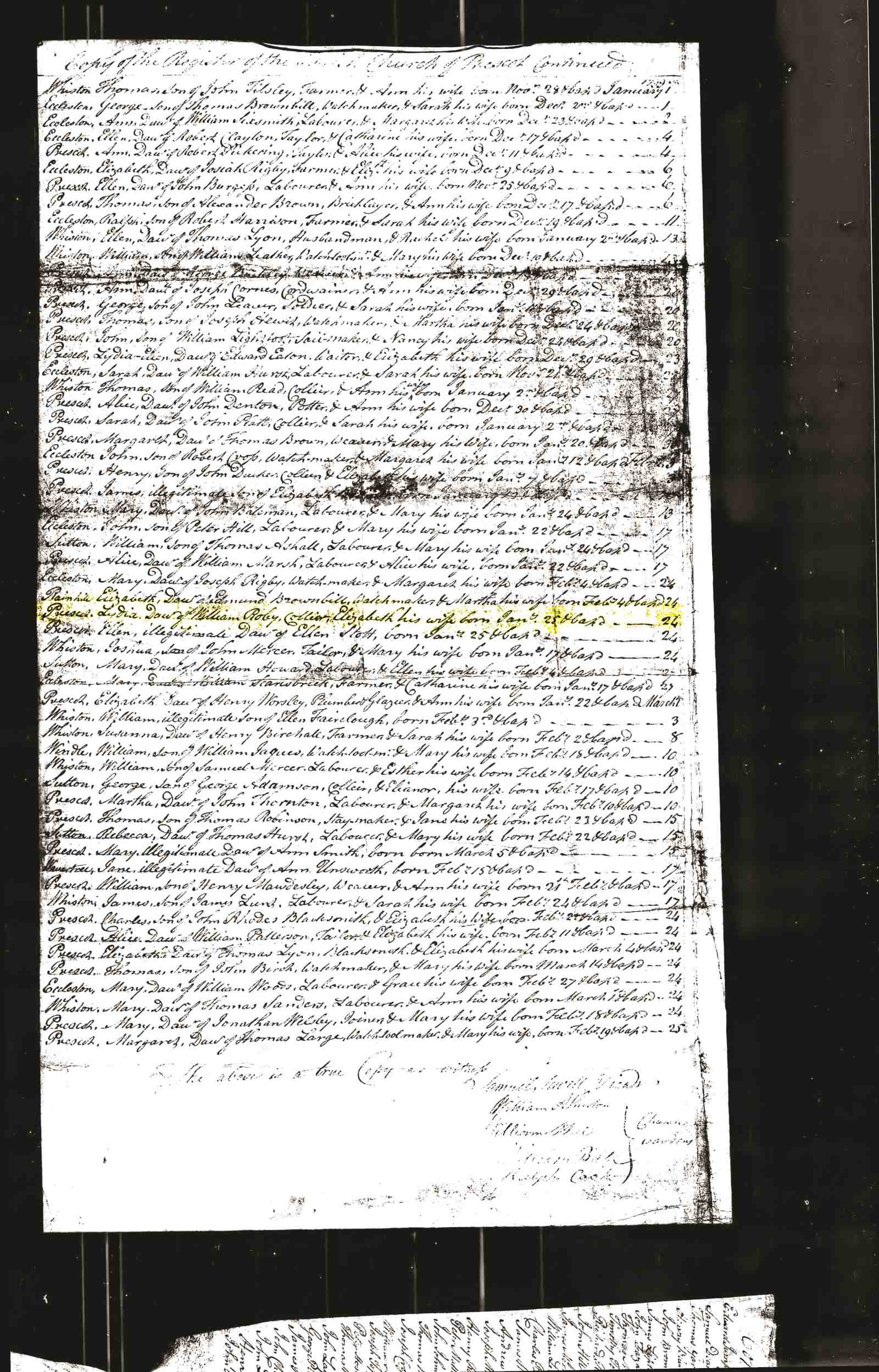 Birth Lydia Roby Lancashire 25 Jan 1799