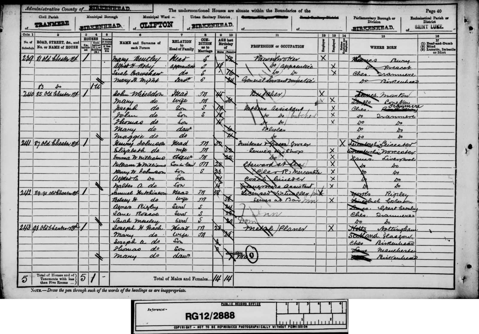 Census Lancashire 1891 Alfred Herbert Roby a. 18