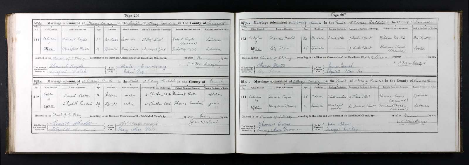Marriage 1904 Lancashire Thomas Mutch & Lily Shaw
