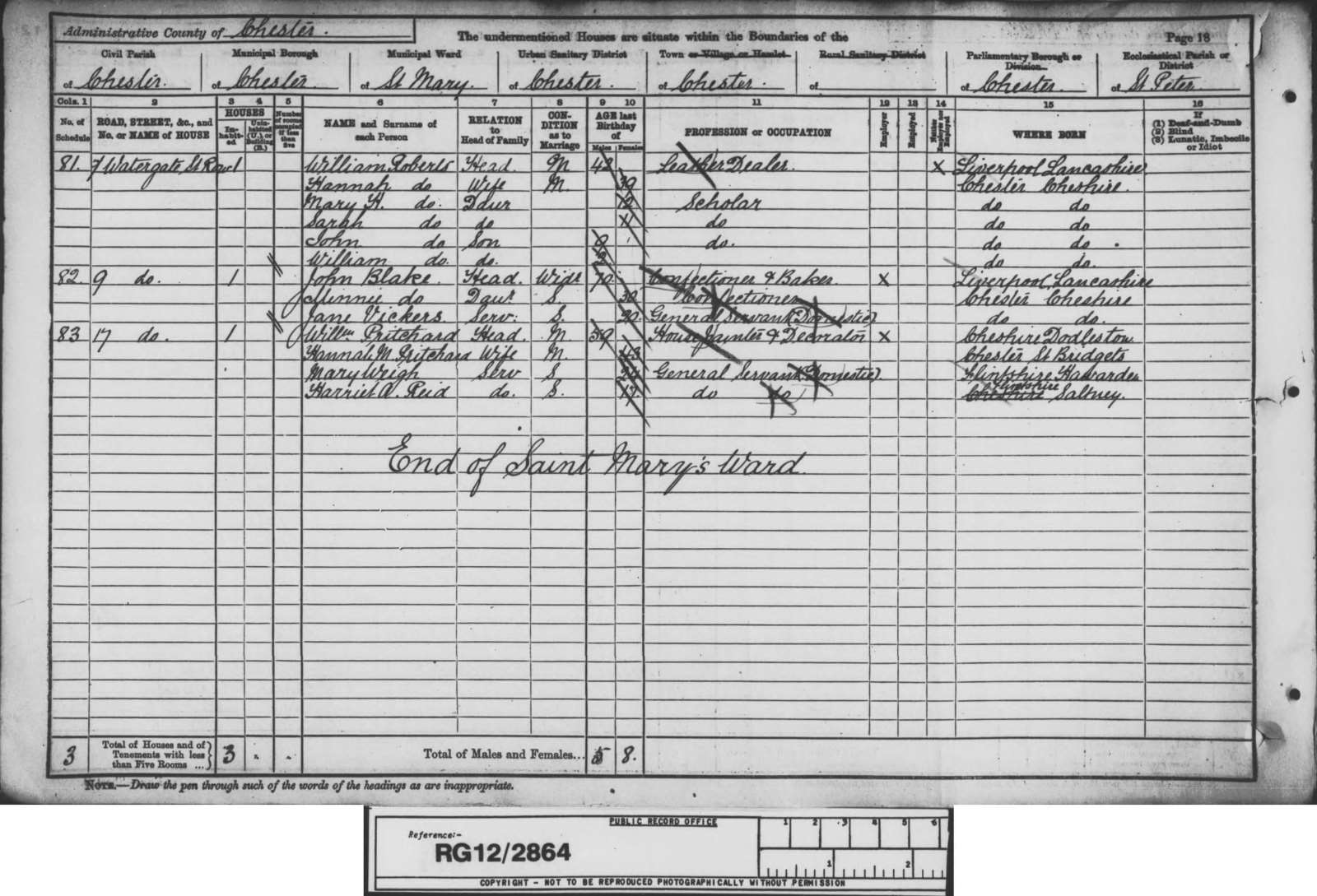 Census 1891 Cheshire William Roberts a. 42