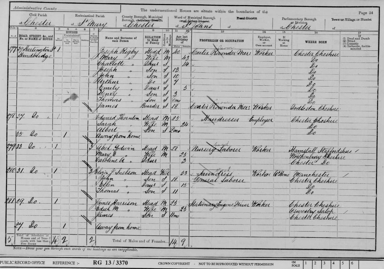 Census 1901 Cheshire Eliza J Snelson a. 53