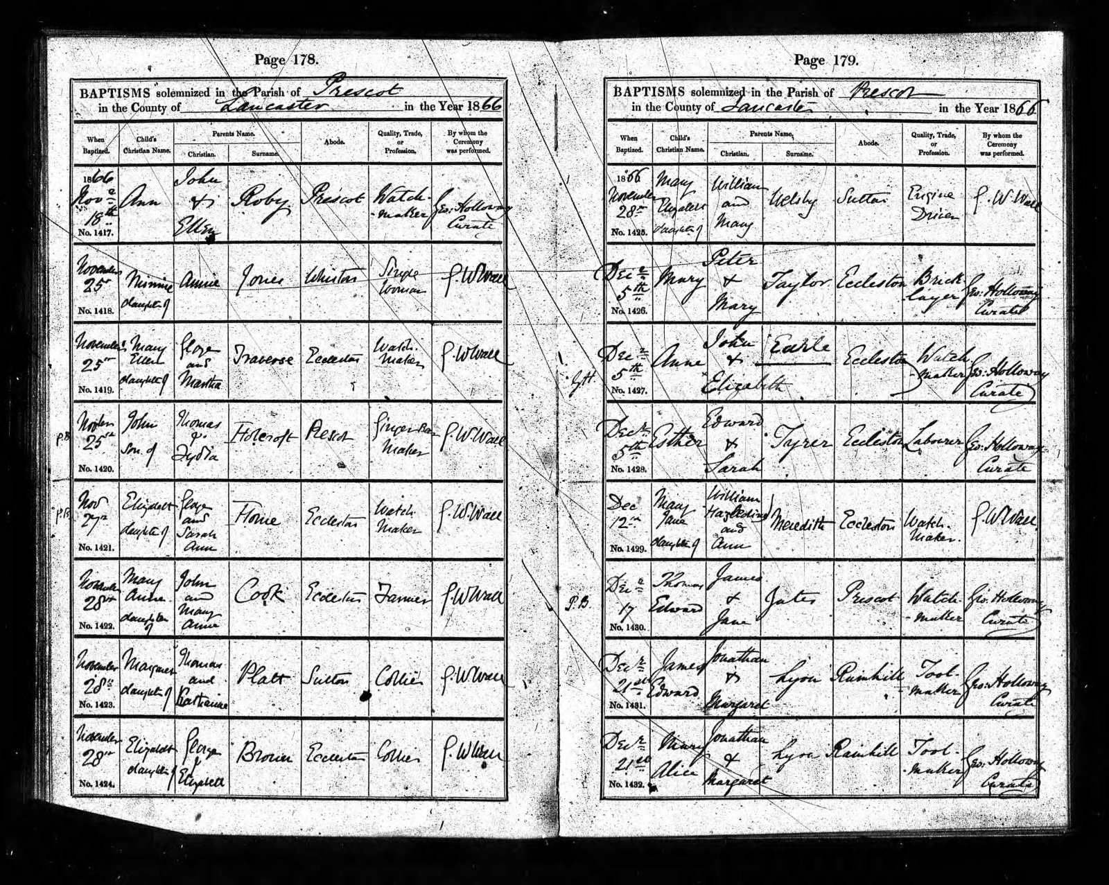 Baptisms (PR) England. Prescot. 1866. ROBY Ann