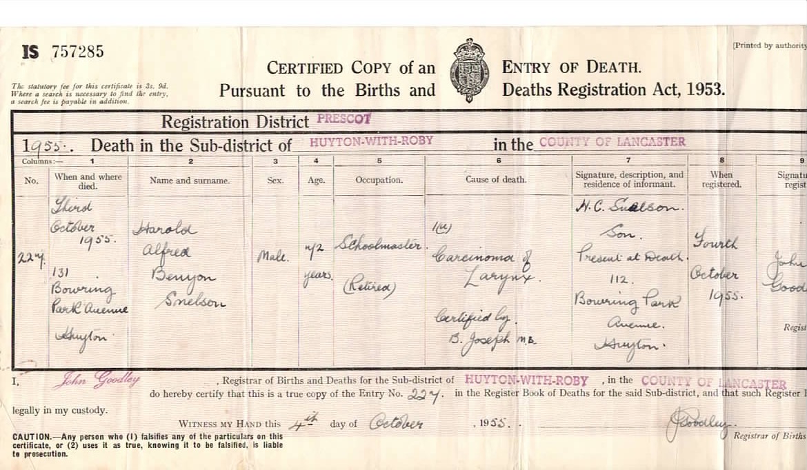 Death 1955 HAB Snelson