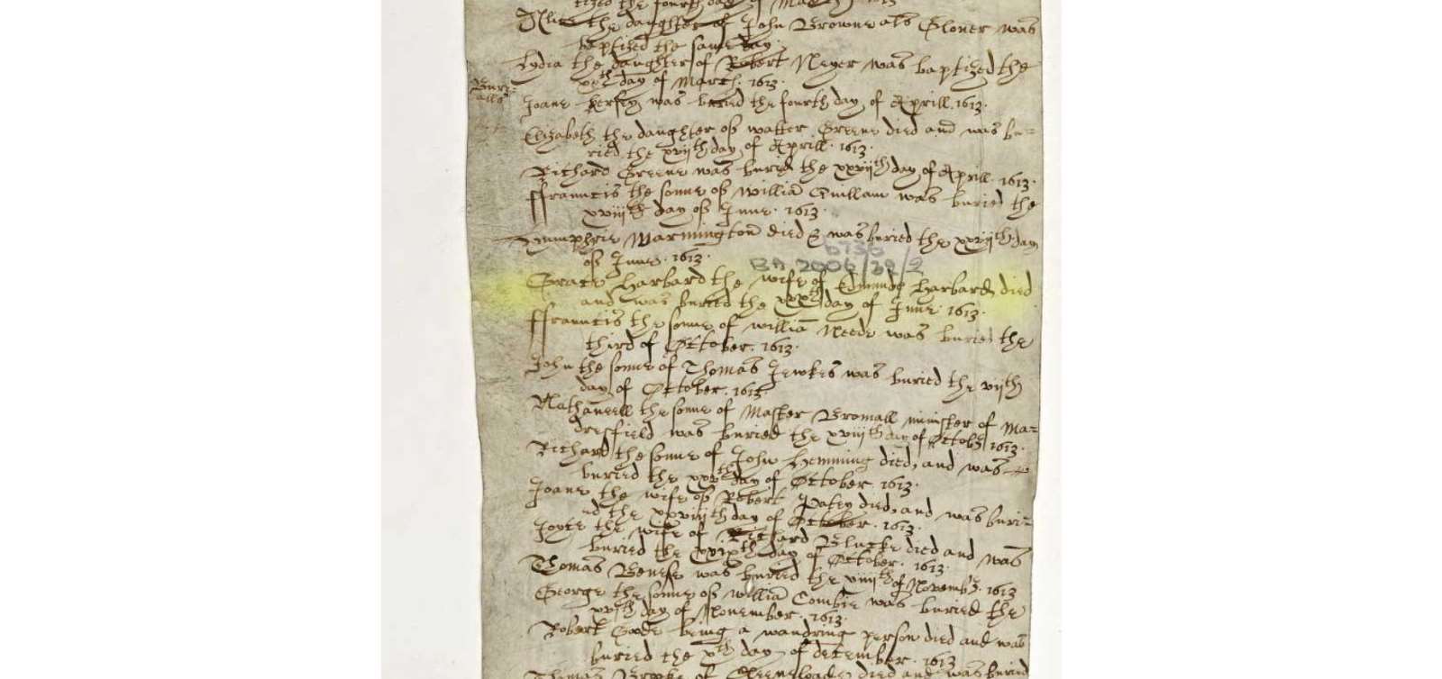 Burial 1613 Worcestershire Grace Harbard