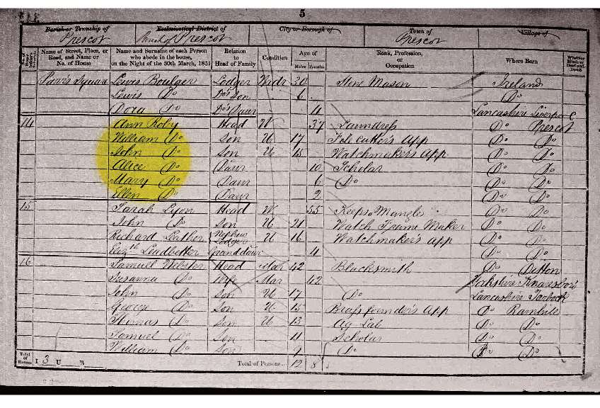 Census 1851 Lancashire Ann Rob
