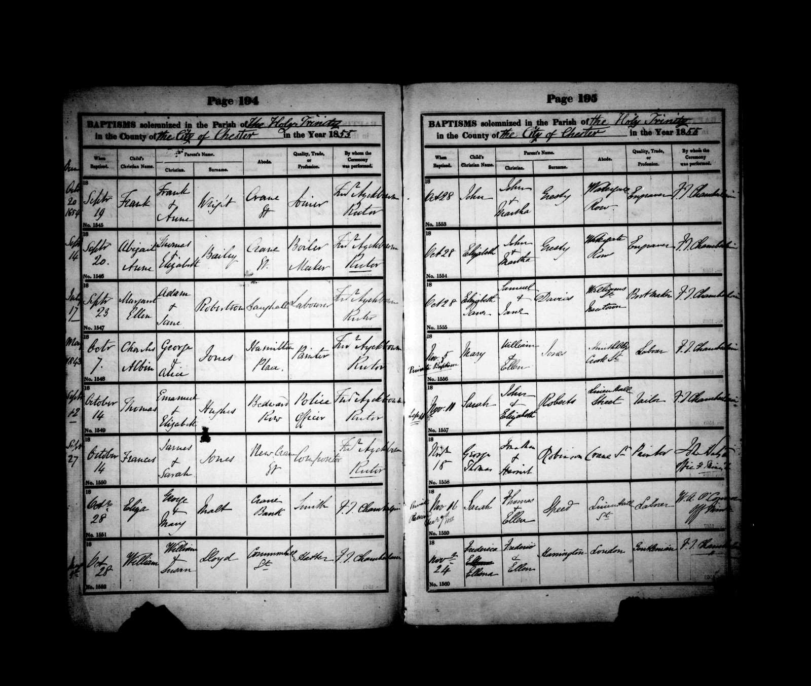 Baptism Elizabeth Jane Davies 1855
