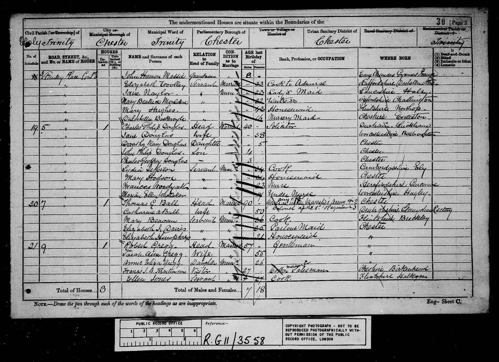 Census 1881 Cheshire Elizabeth Davies a. 25 in Stanley Place