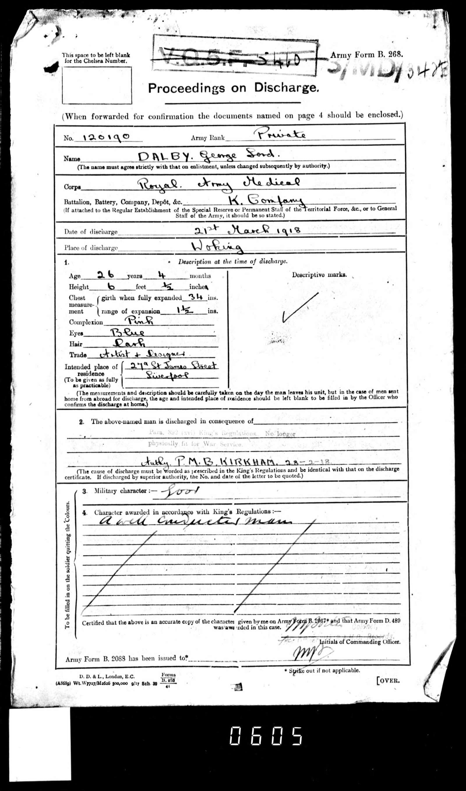 Military Discharge George Lord Dalby 1918