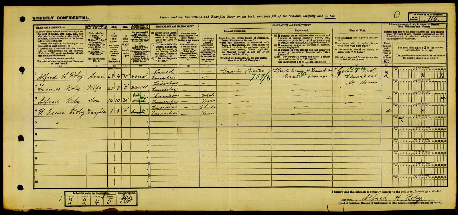 Census 1921 Lancashre Alfred H Roby