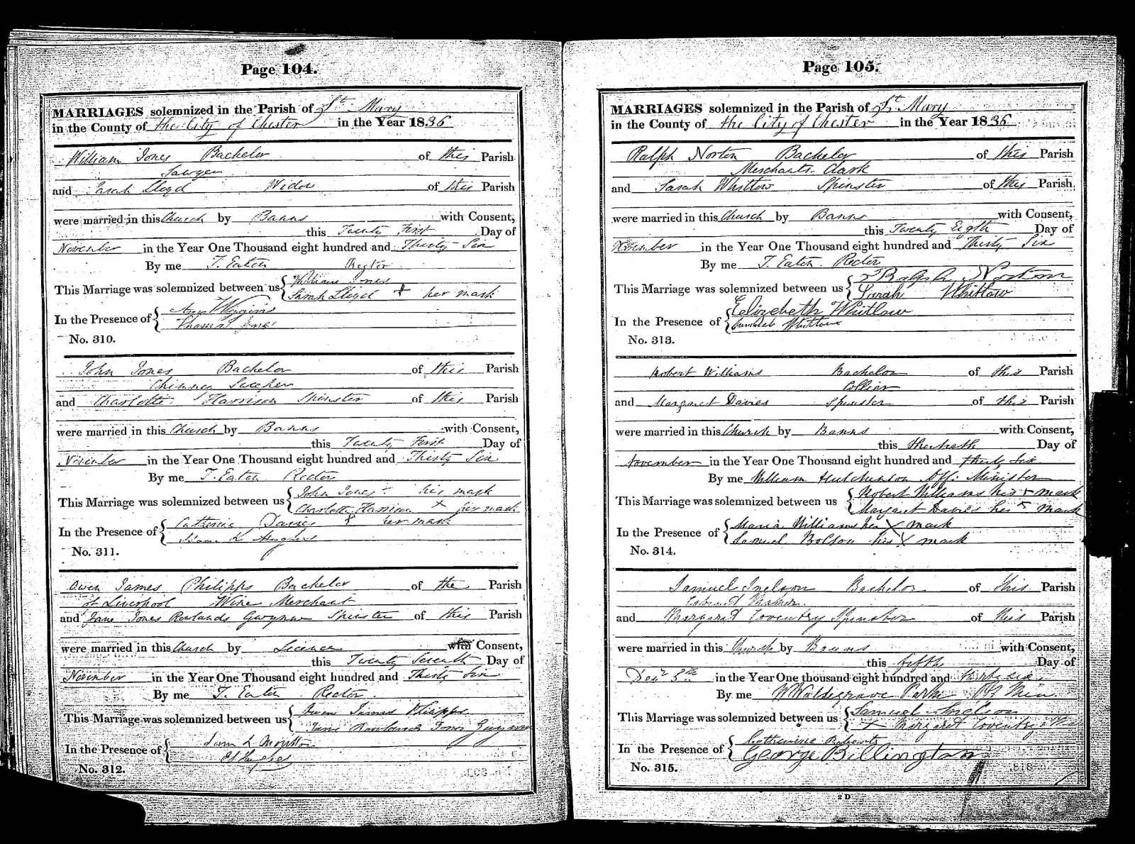 Marriage Cheshire 1836 Samuel Snelson Margaret Coventry