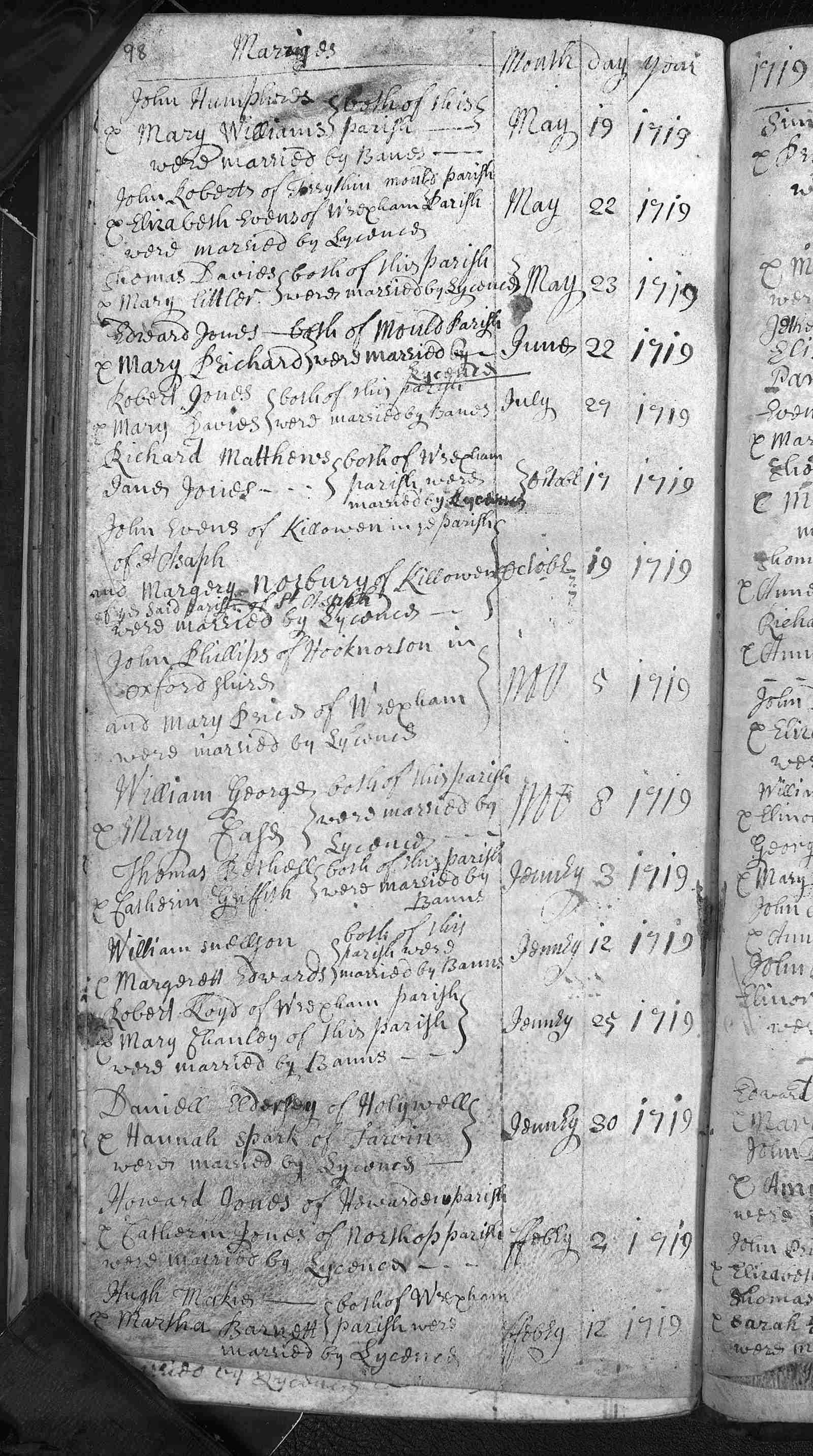 Gresford Marriages 12 January 1719 William Snellson & Margarett Edwards Banns