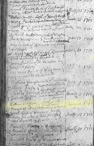 William Snelson m. Margarett Edwards 12 Jan 1719