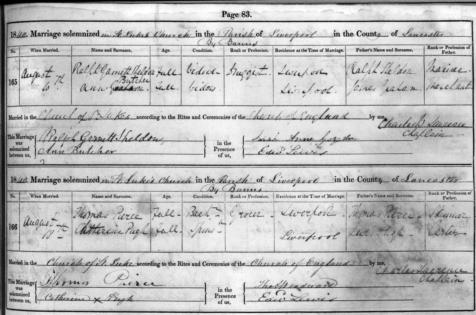 Marriage 1840 Thomas Pierce to Catherine Pugh