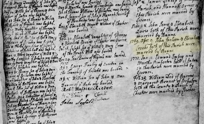 BTs Marriage 1769 April 9 John Snelson and Elizabeth Crooks
