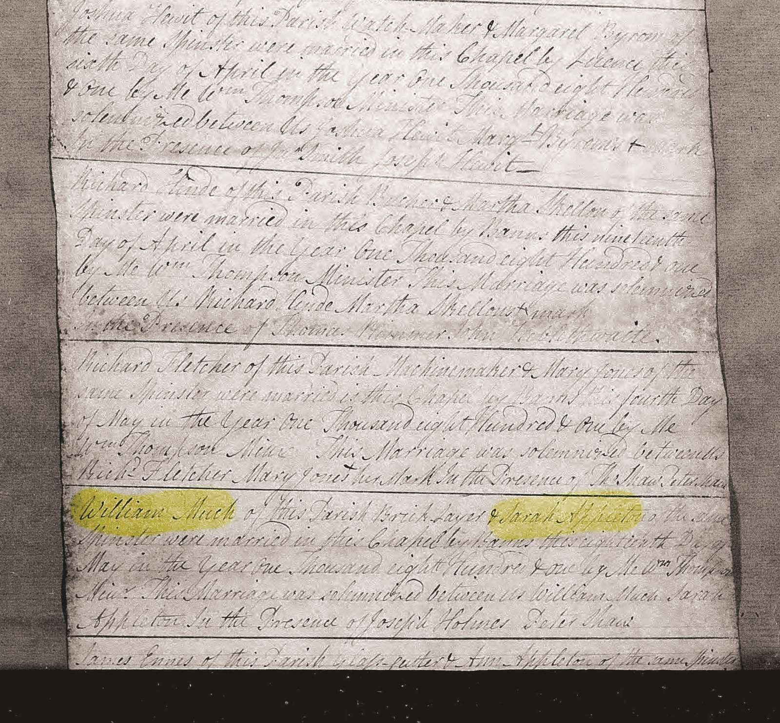 Marriage 1801 Lancashire William Much & Sarah Appleton