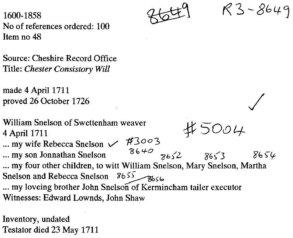 Will William Snelson 1711