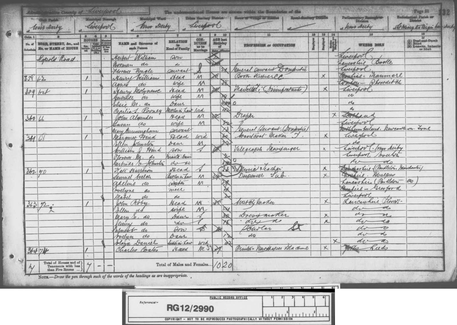 Census 1891 Lancashire John Ro