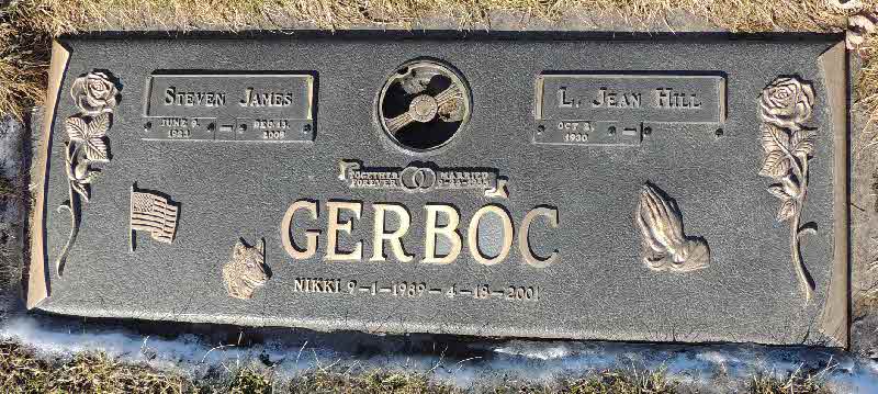Steven James Gerboc was born on 9 June 1923 at Pennsylvania.1,2 He married Lois Jean Hill, daughter of Floyd Wymer Hill and Phoebe Jane Hooks, on 24 September 1955 at Ford City, Pennsylvania. Steven James Gerboc died on 13 December 2009 at Fairview Manor, Fairview, Pennsylvania, at age 86. His obituary: