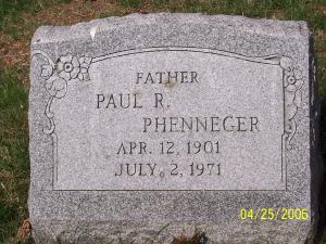 Paul Phennegar was born on 12 April 1901. He married Margaret Bonsall. Paul Phennegar died on 2 July 1971 at age 70.1 He was buried on 5 July 1971 at Calvary Monument Cemetery, Christiana, Lancaster, Pennsylvania.1