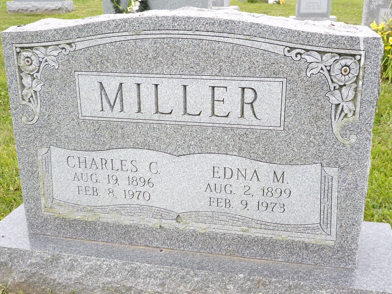 Charles C. Miller was born on 19 August 1896 at Lancaster, Pennsylvania.1 He married Edna Ranck, daughter of Harry W Ranck and Susan Gregg, on 25 May 1918 at Elkton, Maryland. Charles C. Miller died on 8 February 1970 at age 73.1 He was buried on 11 February 1970 at Ranck's United Methodist Church Cemetery, New Holland, Lancaster, Pennsylvania.1 Charles C. Miller Find-a-Grave.com ID # 30213399.