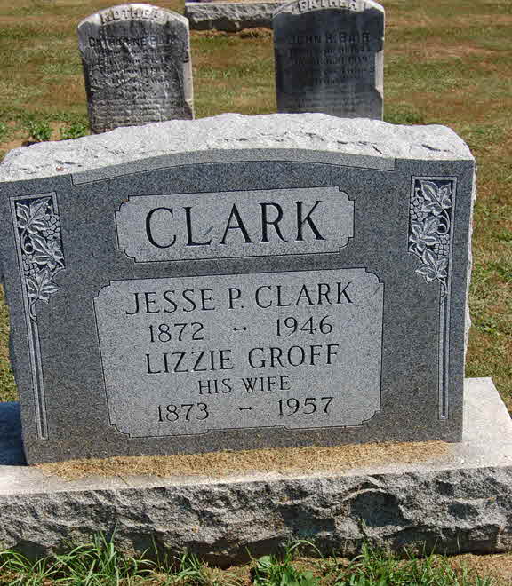 Jesse P Clark was born on 30 December 1872 at near Spring Garden, Salisbury Township, Lancaster, Pennsylvania.1 He married Elizabeth Groff, daughter of Martin Groff and Elizabeth Hershey, before 1897 at Lancaster, Pennsylvania.2 Jesse P Clark died on 7 May 1946 at Salisbury Township, Lancaster, Pennsylvania, at age 73. Cause of death was Uremia due to hypertensive cardiovascular renal disease.3 He was buried on 10 May 1946 at Hershey Mennonite Cemetery, Gap, Lancaster, Pennsylvania. His obituary: Clark.--Jesse P., son of the late Peter S. and Anna (Brackbill) Clark, was born near Spring Garden Pa., Dec. 30, 1872; passed away May 7, 1946; aged 73 y. 4 m. 7 d. In 1895 he was married to Lizzie Groff, who survives. Also surviving are 3 sons (Chester, Ivan, and Landis, all of Kinzers, Pa.), 4 daughters (Sue--Mrs. Benjamin Snyder, New Holland, Pa; Bertha, Mary, and Esther, all at home), 2 brothers and 4 sisters (Martin, of Kinzers; Hettie--Mrs. Benjamin Kurtz, John, Ada, Linnie, and Annie, all of Intercourse, Pa.), and 12 grandchildren. Along with his wife he joined the Mennonite Church. His health was failing for a number of years and during the nine months preceding his death he spent most of the time in bed, but was very patient, complaining little of his condition. Funeral services were held at the Kinzers Church, in charge of Martin Hershey and Amos Weaver. Text, Ps. 146:5. Burial was made in the Hershey Cemetery.