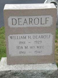 William H Dearolf was born on 21 August 1861 at Lancaster, Pennsylvania.1,3,4 He married Ida May Rogers, daughter of Mark Rogers and Hanna Huppart, on 24 December 1884. William H Dearolf died on 19 April 1929 at Eden Township, Lancaster, Pennsylvania, at age 67. Cause of death was broncho pneumonia, contributory fracture of tibia and fibula from a fall from horse Feb 27, 1929.1,5 He was buried on 22 April 1929 at Hellers Reformed Cemetery, Lancaster, Lancaster, Pennsylvania.5 William H Dearolf Find-a-Grave.com ID # 55405481 + family links.
