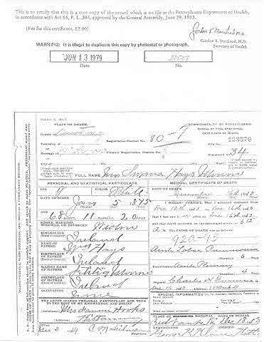 - [S32] Death Certificate, Pennsylvania Death Certificates 1906-1963. Certificate # 123576.