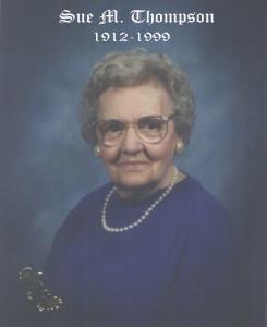 Susannah Jane Morrow was born on 16 May 1912 at Wickboro, Armstrong, Pennsylvania.1 She was baptized on 15 March 1914 at St Paul Episcopal Church, Kittanning, Armstrong, Pennsylvania; Parents are listed as J A Morrow and Nancy Cousins Morrow. Witnesses: Mrs L Croll & Mrs Wm Gough.2 She married Charles Henry Tubbs, son of Albert Tubbs and Ada Florence Davidson, on 31 December 1931 at Tyenesta Parsonage, Tionesta, Pennsylvania. Susannah Jane Tubbs and Charles Henry Tubbs were divorced on 5 April 1956 at Staunton, Augusta, Virginia. Cause of divorce was constructive desertion and cruelty. Divorce was granted to wife, not contested and alimony was granted. This was an absolute type divorce. Date of separation was Apr 10, 1953.3 Susannah Jane Tubbs married Richard Claude Thompson, son of William Alexander Thompson and Annie Byrd Carpenter, on 29 December 1961 at Presbyterian Church, Staunton, Augusta, Virginia. Ceremony was performed by Richard R. Potter, same minister that married Susannah's son, Charles Jr. On marriage record it gives Susannah's mother's name as Nancy Virginia Cousins.4 Susannah Jane Morrow died on 3 July 1999 at At Home 1:10 am, Staunton, Augusta, Virginia, at age 87. She was buried on 6 July 1999 at Thornrose Cemetery, Staunton, Augusta, Virginia; Service conducted by Dr A Taylor Todd & Dr Randolph Harrison.
