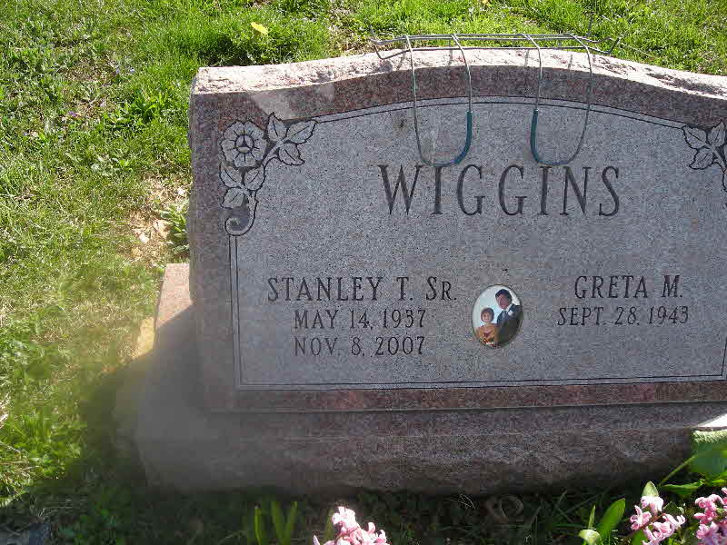 Stanley Thomas Wiggins was born on 14 May 1937 at Newport News, Virginia.2 He married Greta Marie Peace, daughter of Harry Umpstead Peace and Grace Salone Wright.3 Stanley Thomas Wiggins died on 8 November 2007 at Lancaster Hospice Essa Flory Center, Lancaster, Lancaster, Virginia, at age 70.2 He was buried on 13 November 2007 at Glen Run Cemetery, Atglen, Chester, Virginia.2 Stanley Thomas Wiggins Find-a-Grave.com ID # 48255002.