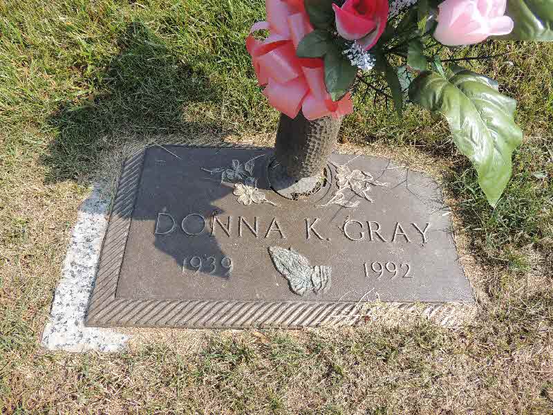 Donna Kaye Mechling was born on 15 May 1939 at Kittanning, Armstrong, Pennsylvania.1 She married Jerry Thomas Gray before 1958.1 Donna Kaye Mechling died on 19 April 1992 at Sugarcreek Rest Home, Worthington, Pennsylvania, at age 52.1 She was buried on 21 April 1992 at Lawn Haven Burial Estates, Worthington, Armstrong, Pennsylvania.2 Donna Kaye Mechling Find-a-Grave.com ID # an unknown place ; 62630143.