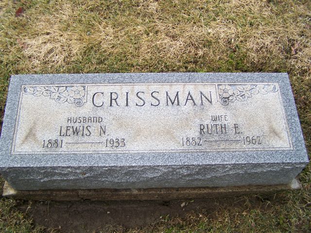Lewis Nelson Crissman was born on 2 February 1881 at Armstrong, Pennsylvania.2 He married Ruth Ella Hays, daughter of William John Hays and Catherine Ann John.1 Lewis Nelson Crissman died on 6 October 1933 at Derry, Westmoreland, Pennsylvania, at age 52. His obituary reads: Lewis Chrisman Killed in Wreck