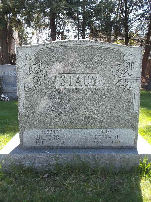 Wilford Austin Stacy was born on 9 September 1911 at New Jersey.1,2 He married Grace Hanrahan, daughter of Alexander Hanrahan and Grace O'Leary, on 16 August 1936 at Rahway, Union, New Jersey.4,5 Wilford Austin Stacy married Betty Walker Tuthill, daughter of James Benson Tuthill and Anna Walker, on 16 April 1951 at Arlington, Virginia; by Harry W Backhus, III, minister of Methodist Church, Richmond, VA.2,3 Wilford Austin Stacy died in September 1978 at Beach Haven, Ocean, New Jersey.2 He was buried in September 1978 at Rahway Cemetery, Rahway, Union, New Jersey.2 Wilford Austin Stacy Find-a-Grave.com ID # 159990611.