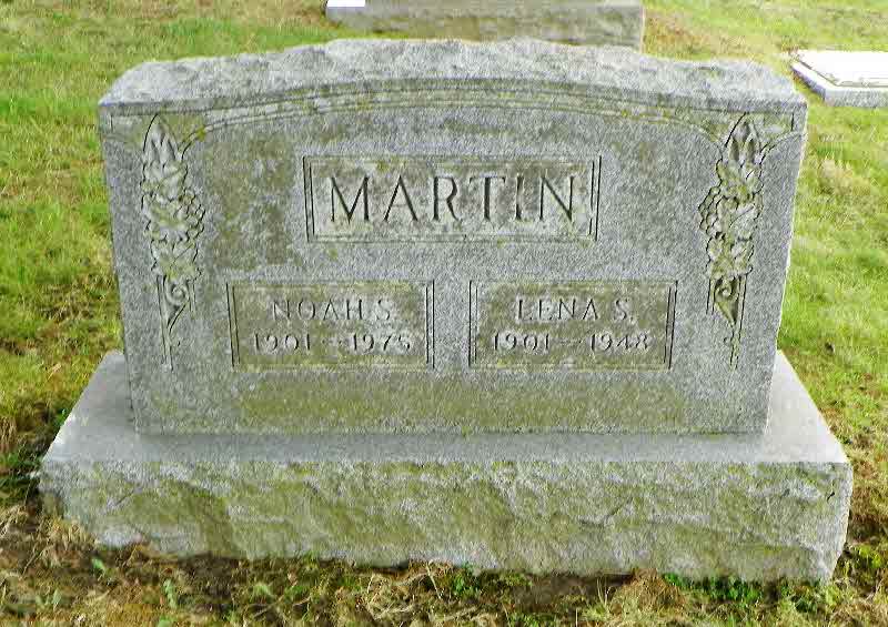 Noah Sylvester Martin married Lena Sara Thompson, daughter of Luther Thompson and Bella Pickel.3 Noah Sylvester Martin was born on 23 July 1901 at Leacock, Lancaster, Pennsylvania.1,4,2 He died in July 1975 at Lancaster, Pennsylvania.4 He was buried in July 1975 at Bellevue Presbyterian Cemetery, Gap, Lancaster, Pennsylvania.4 Noah Sylvester Martin Find-a-Grave.com ID # 77587777.