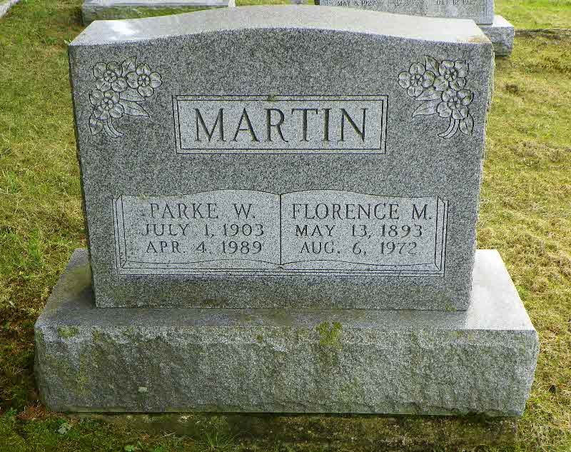 Parke William Martin married Florence M (?)3 Parke William Martin was born on 1 July 1903 at Leacock Township, Lancaster, Pennsylvania.1,3,2 He died on 4 April 1989 at Lancaster, Pennsylvania, at age 85. In bible his middle intital is W.3,4 He was buried on 7 April 1989 at Bellevue Presbyterian Cemetery, Gap, Lancaster, Pennsylvania.3 Parke William Martin Find-a-Grave.com ID # 77587774 + family links.