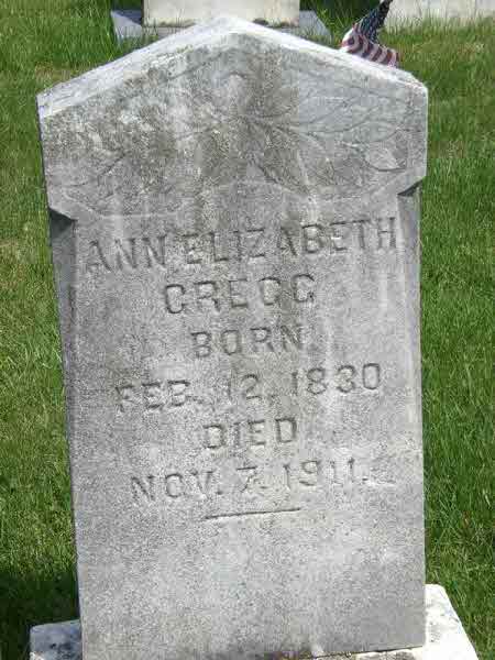 - [S30] Newspaper Obit, Death notice in Chester county Local, Nov 9, 1911 for Anna Elizabeth Gregg.