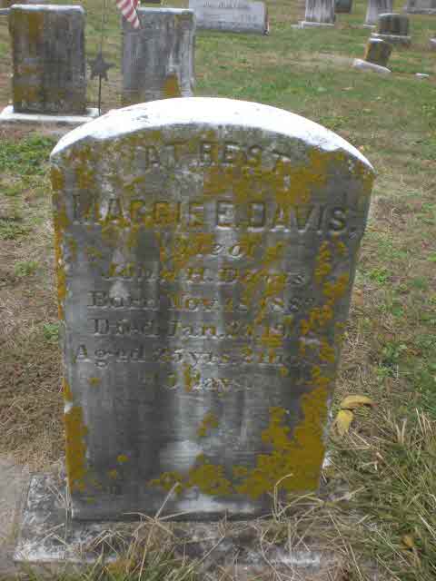 Margaret (Maggie) Danfield was born on 18 November 1882 at Lancaster, Pennsylvania. Death certif looks like Oct 18, 1882 for birth date.4,2 She married John H Davis, son of Lewis C Davis and Ida McCreary, before 1903.1 Margaret (Maggie) Davis died on 23 January 1908 at Salisbury Township, Lancaster, Pennsylvania, at age 25. Cause of death was pulmonary tuberculosis.2 She was buried on 26 January 1908 at Pequea Baptist Cemetery, Gap, Lancaster, Pennsylvania.2 Margaret (Maggie) Davis Find-a-Grave.com ID # 68268136.