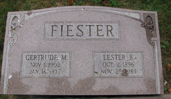 Gertrude Myles was born in 1903.2 She married Lester Bryan Feister, son of Martin Elwood Fiester and Mary Violetta Miller.1 Gertrude Fiester died on 20 January 1977.1,2 She was buried on 20 January 1977 at Cedar Lawn, Lancaster, Pennsylvania, Section C, Lot 55, Grave 3. also on this lot are son, Clyde Myles, b Sep 1923 d. Apr 1961 by 38 caliber gun suicide. grave 6, and Miram his wife, b March 1919. d Mar 1979, grave 5.2,3
