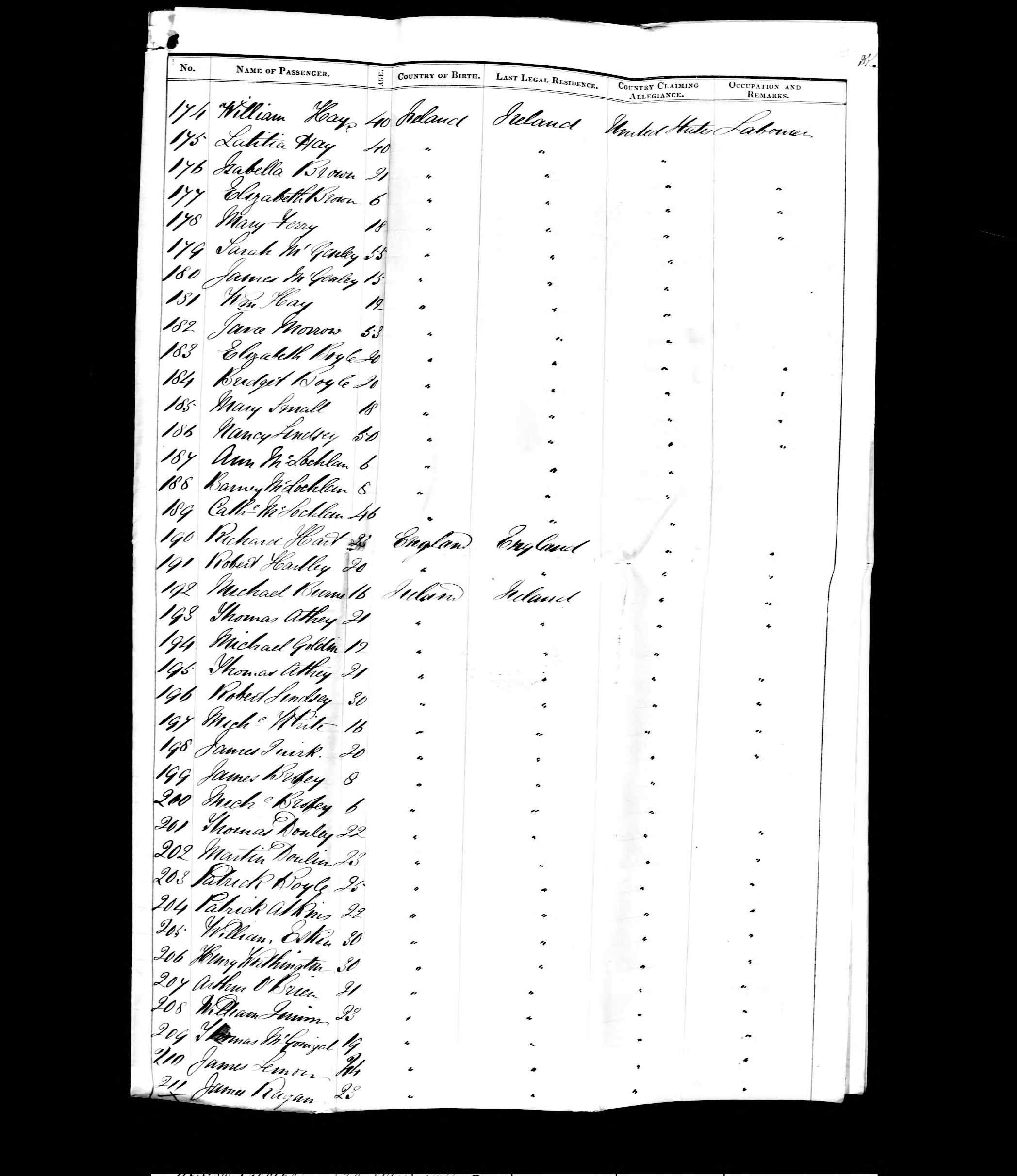 - [S318] Various, Various unknown record type, Various, New York, New York Passenger and Crew Lists 1820-1957 for William Hayes leaving Liverpool England for New York.