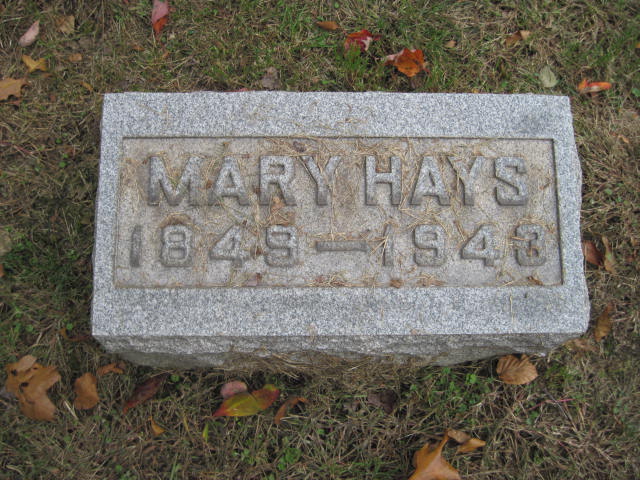 - Mary Hays+ b. 30 Jun 1849, d. 28 May 1943