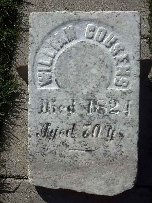 ? FamilySearch Family Tree ID # L8BX-663.6 He began military service in 1776 He served in Militia from Northumberland County.1 He lived in 1810 at Sugar Creek, Venango, Pennsylvania.7 He lived in 1820 at Venango, Pennsylvania.2 He left a will on 23 April 1825 at Venango, Pennsylvania; Last Will and Testament of William Cousins