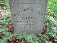 ? Her married name was Cousins.1 She and William Cousins appeared on the census of 14 September 1850 at Sugarcreek Twp, Armstrong, Pennsylvania.4 Sarah Cousins and William Cousins appeared on the census of 17 June 1860 at Franklin Township, Armstrong, Pennsylvania.5 Sarah Cousins and William Cousins appeared on the census of 8 July 1870 at Bradys Bend, Armstrong, Pennsylvania; Surname spelled Conins in this census.6