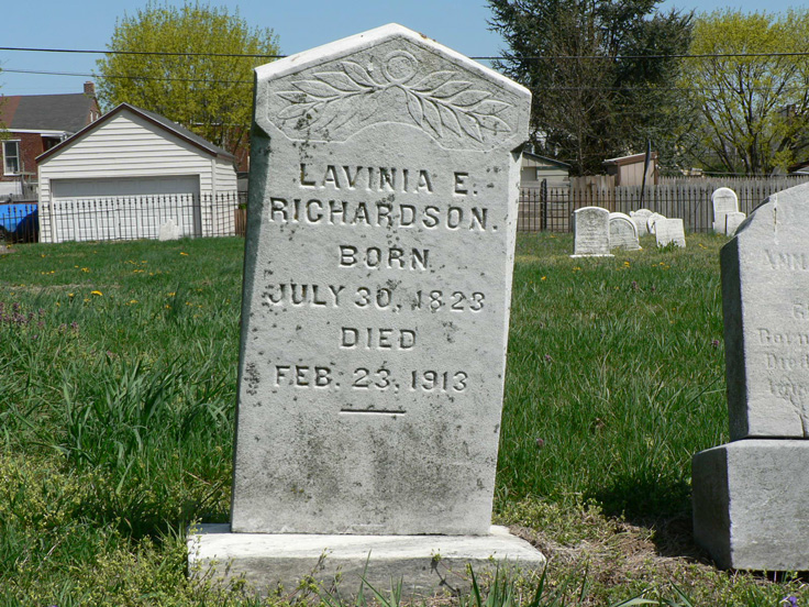 ? Her married name was Richardson.1 She and Samuel Richardson appeared on the census of 18 June 1860 at Salisbury Township, Lancaster, Pennsylvania.5 Lavinia E. Ferguson and Samuel Richardson appeared on the census of 1 July 1870 at Pennsylvania.6 Lavinia E. Ferguson and Samuel Richardson appeared on the census of 14 June 1880 at North Second St, Columbia, Lancaster, Pennsylvania.7 Lavinia E. Richardson appeared on the census of 18 April 1910 at 105 L Linden St, Columbia, Lancaster, Pennsylvania.8