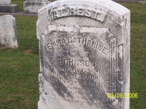 Emma Catharine Johnson was born on 17 May 1859 at Pennsylvania.1,2 She died on 22 May 1906 at age 47.1,3 She was buried on 25 May 1906 at Georgetown United Methodist Cemetery, Bart, Lancaster, Pennsylvania.1 Emma Catharine Johnson Find-a-Grave.com ID # 84370209.