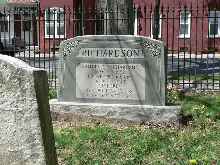 Samuel C Richardson was born on 5 April 1876 at West Hemfield Twp, Lancaster, Pennsylvania.3,1 He married Catherine Kratzert, daughter of Jacob B. Kratzert and Elizabeth (Bessie) Greenawalt, on 15 February 1900 at Lancaster, Lancaster, Pennsylvania.3 Samuel C Richardson died on 14 January 1952 at Lancaster, Lancaster, Pennsylvania, at age 75.3 He was buried on 17 January 1952 at Mount Bethel Cemetery, Columbia, Lancaster, Pennsylvania.2 Samuel C Richardson Find-a-Grave.com ID # 14231251.2