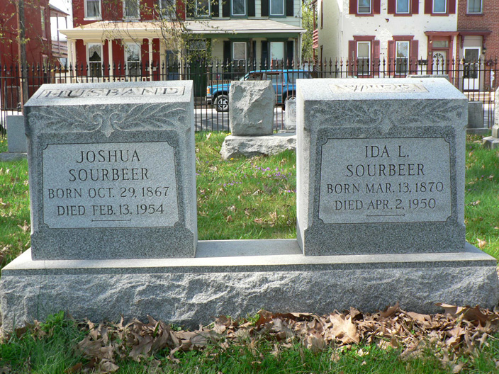 Joshua Sourbeer was born on 29 October 1867 at Columbia, Lancaster, Pennsylvania.1 He married Ida Richardson, daughter of James C. Richardson and Catherine E. Clark, on 28 March 1888 at Columbia, Lancaster, Pennsylvania.1 Joshua Sourbeer died on 13 February 1954 at Columbia, Lancaster, Pennsylvania, at age 86.1 He was buried on 16 February 1954 at Mount Bethel Cemetery, Columbia, Lancaster, Pennsylvania.2 Joshua Sourbeer Find-a-Grave.com ID # 14231142.