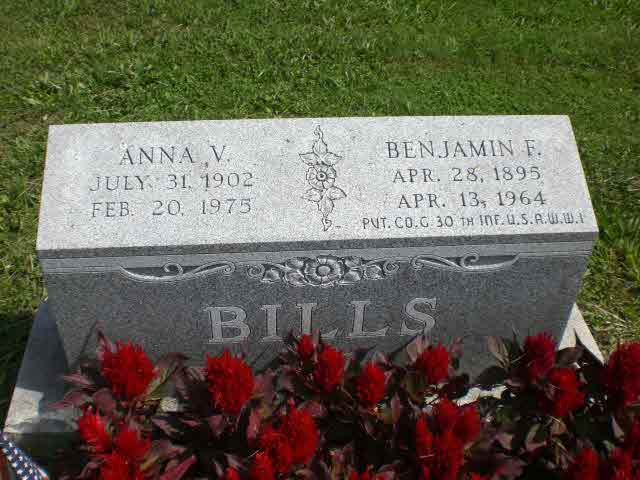 Benjamin F Bills was born on 28 April 1895.1,4 He married Anna V. Hauck, daughter of Henry B. Hauck and Anna Mary Gregg, circa 1919.1 Benjamin F Bills died on 13 April 1964 at age 68.4 He was buried on 16 April 1964 at Mount Zion United Methodist Cemetery, Narvon, Lancaster, Pennsylvania.4 Benjamin F Bills Find-a-Grave.com ID # 30515421.4